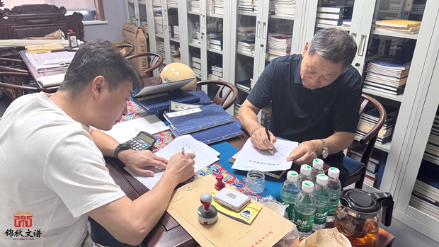 接著,雙方針對電腦版資料展開了現(xiàn)場溝通,對局部內(nèi)容進行了細致的優(yōu)化調(diào)整。待所有細節(jié)都溝通妥當(dāng)后,劉老師在眾多精美的裝訂款式中,精心挑選了藍色小圓龍一函一冊的裝幀形式,并決定采用宣紙印刷來制作本家的譜書。最終,雙方當(dāng)場鄭重簽訂了《劉氏家譜》編印協(xié)議!