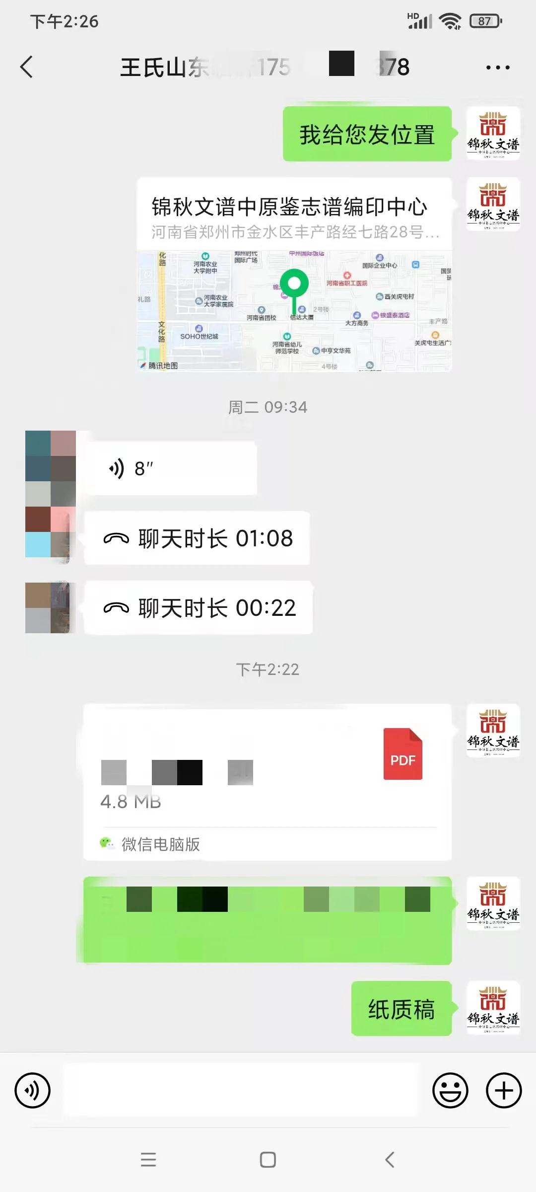 來自河南的張氏家族,因為家譜有著“三十年一小修,六十年一大修”的說法,所以產(chǎn)生了修譜的想法,在了解到錦秋文譜便詳細咨詢了關(guān)于家譜編修的問題,在溝通過程中,張老師感受到了錦秋文譜的專業(yè)性。
