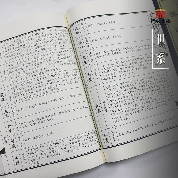 世系,家譜中的重要組成部分,也被稱為“行傳”或“譜文”。一部家譜中的世表內(nèi)容通常包括以下方面:名、字、號(hào)、生、卒、葬、學(xué)、銜、職、行、婚、育。