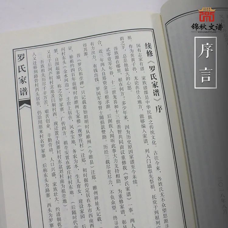 吾族源在哪里,根在何方?多少年來,因?yàn)闅v史原因家譜至今未續(xù)。貳零壹零年春,十二世龍喜和十三世善智共同商議重修我《羅氏家譜》一事。兩人一拍即合、近三年兩人自籌資金尋根求源。后閣族人聞聽此事大力支持相助。為重修家譜、彰是祖德有力出力、有錢出錢。羅國軍等賢士隨捐款贊助。歷經(jīng)三載盡責(zé)盡力,不負(fù)眾望,終尋得其根找得其源,并編印出版了《羅氏家譜》,且捐贈(zèng)一冊(cè)至錦秋文譜中華家譜館收藏,以便天下羅氏宗親連脈溯源。