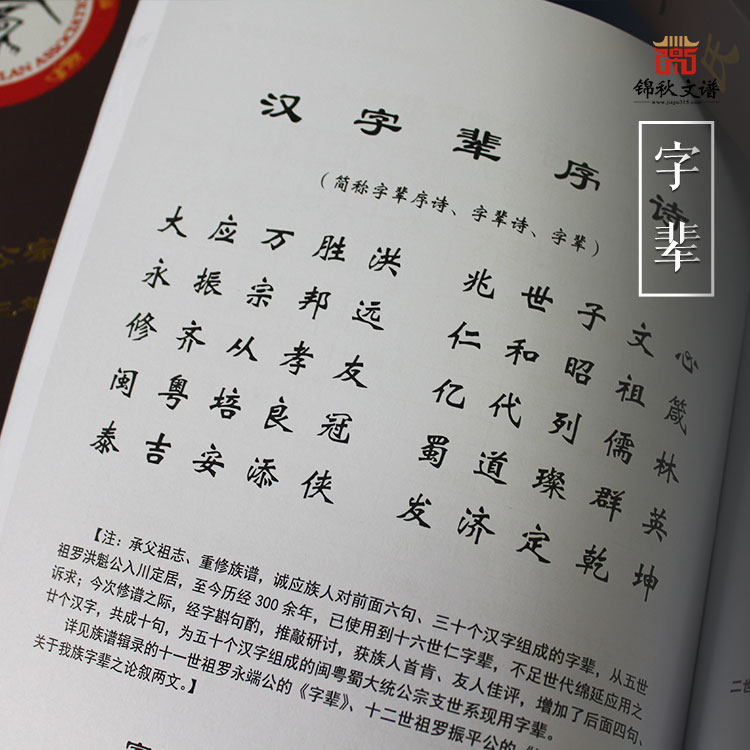 其二、采用以詩文意境結(jié)構(gòu)的一種意在教誨、激勵(lì)后人不懈追求、自強(qiáng)不息;傳承先祖開基創(chuàng)業(yè)精氣神;謹(jǐn)守羅氏傳統(tǒng)家風(fēng)的漢文字“字輩序詩”,來為族人排輩。使其長幼有序老小不紊。緊扣支脈世系,有每一代族人的立居、人口、平生、軼事、特長、專業(yè)、功業(yè)、成果、生卒時(shí)地以及與外族聯(lián)姻結(jié)親,娶進(jìn)嫁出等忠于史實(shí)的簡明記錄、存照。