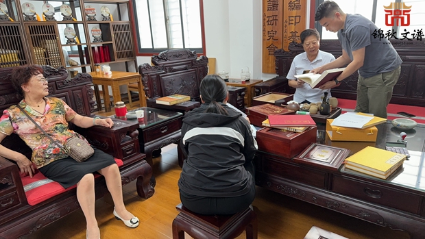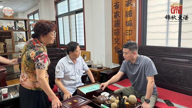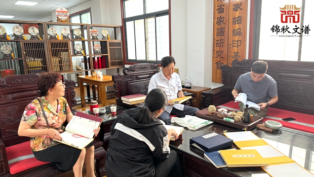 近日,江蘇阜寧的錢(qián)老師與其同伴,宛如久別重逢的故人,再度踏入錦秋文譜|中華家譜館。我館焦、趙二位編輯以滿腔的熱情接待了他們。