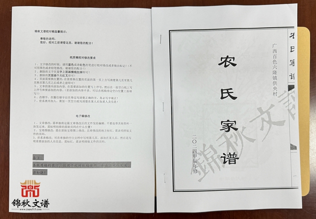 編修進(jìn)展:《農(nóng)氏家譜》(廣西)一校稿已郵寄。