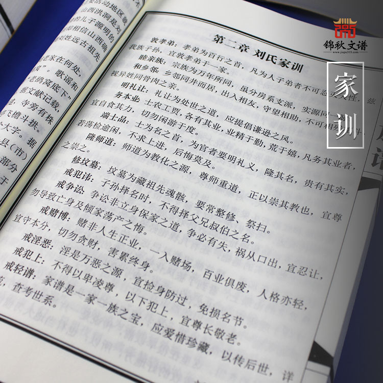 【家訓】是家族的法規(guī)。內(nèi)容基本上為修身、齊家、守法等方面。其中一部分包括:規(guī)約、訓語、廟規(guī)。