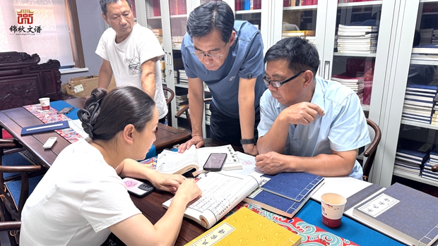 為了讓張氏家族成員更直觀地了解家譜編印的工藝和效果,王編輯帶領(lǐng)他們來到家譜樣本展示區(qū)。在這里,他們針對薄厚宣紙的差別、六孔和四孔裝訂工藝的優(yōu)缺點(diǎn)、六函和四函的區(qū)別等問題,向王編輯進(jìn)行了詳細(xì)地詢問。王編輯耐心地為他們解答,從宣紙的質(zhì)地、印刷效果到裝訂工藝的牢固程度、美觀度,再到函套的實(shí)用性和文化內(nèi)涵,每一個(gè)方面都講解得十分透徹。經(jīng)過一番深入的了解和比較,張氏家族編委會成員們經(jīng)過慎重考慮,最終選定了四孔裝訂、厚宣來裝幀本家族譜。他們表示,選擇厚宣和四孔裝訂,不僅是為了保證家譜的質(zhì)量和耐久性,更是表達(dá)對祖宗的敬畏之心,希望這本家譜能夠成為家族文化的永恒載體,代代相傳。