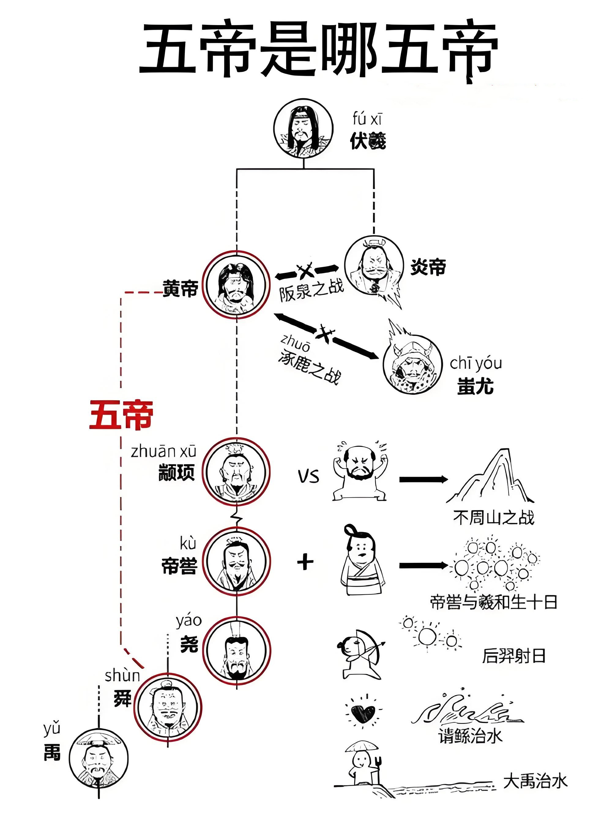 三皇五帝(伏羲、神農(nóng)、黃帝、顓頊、帝嚳、堯、舜)的記載主要見(jiàn)于《史記·五帝本紀(jì)》《世本》等文獻(xiàn),但這些文本成書(shū)于戰(zhàn)國(guó)至漢代,距離所載時(shí)代已逾千年,且摻雜大量神話傳說(shuō)?,F(xiàn)代考古學(xué)尚未發(fā)現(xiàn)能直接證明三皇五帝存在的實(shí)物證據(jù),其形象更多是先民對(duì)文明起源的集體想象。在此背景下,將家譜強(qiáng)行對(duì)接遠(yuǎn)古圣王,實(shí)則混淆了歷史與傳說(shuō)的界限。