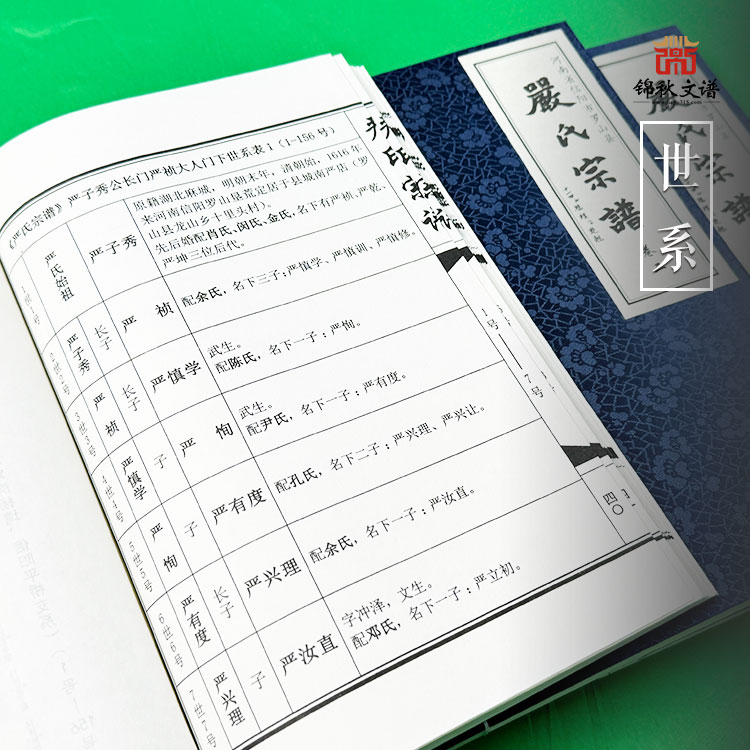 一,本次續(xù)修《嚴(yán)氏宗譜》(后簡稱《譜》)版式采用210×285厚宣紙加古譜紙規(guī)格,縱版橫書,左翻右續(xù),適合今人閱讀習(xí)慣。前為文字,圖片資料;后為瓜瓞圖配世系考人物介紹。