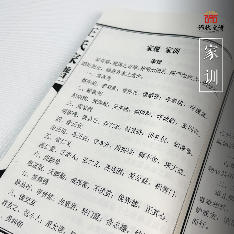 家譜中記錄了許多治家教子的名言警句,成為人們傾心企慕的治家良策,成為“修身”、“齊家”的典范。例如“一粥一飯,當(dāng)思來之不易”的節(jié)儉持家思想,今天看來仍有積極意義。在家譜中有不少詳記家訓(xùn)、家規(guī)等以資子孫遵行的。當(dāng)中,最為人稱道的名訓(xùn),如顏氏家訓(xùn)、朱子治家格言等,至今膾炙人口。