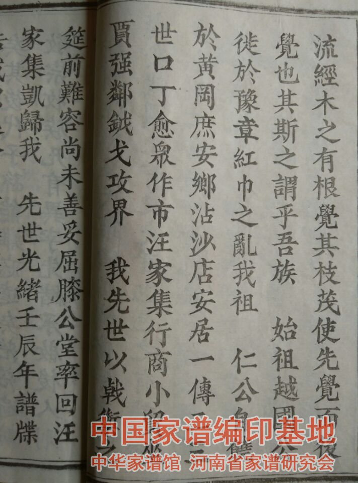 始祖越國公徙于豫章紅巾之亂我祖。仁公自饒于黃岡安庶鄉(xiāng)沾沙店居住。一傳二三世作市汪家集。