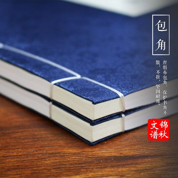 理料—折頁—配頁—檢查理齊—壓平—打眼穿紙釘—粘封面—配本冊、切書—包角—復口—打眼穿線訂書—粘簽條—印書根。