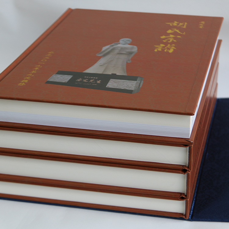 硬殼精裝:封面為硬殼,鎖線精裝,內(nèi)文多用古譜紙或仿宣紙,彩色照片多用銅版紙,照片色彩清晰、逼真。硬殼封面可使用彩印紙、膠化紙、 彩烙紙、皮革、漆布、綾絹布、精品紙,且可采用燙金、燙銀、擊凸、擊凹、局部UV等工藝。