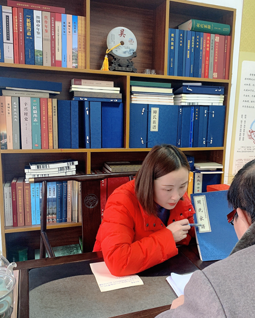 王編輯認(rèn)真聆聽鄒氏宗親講述家譜情況