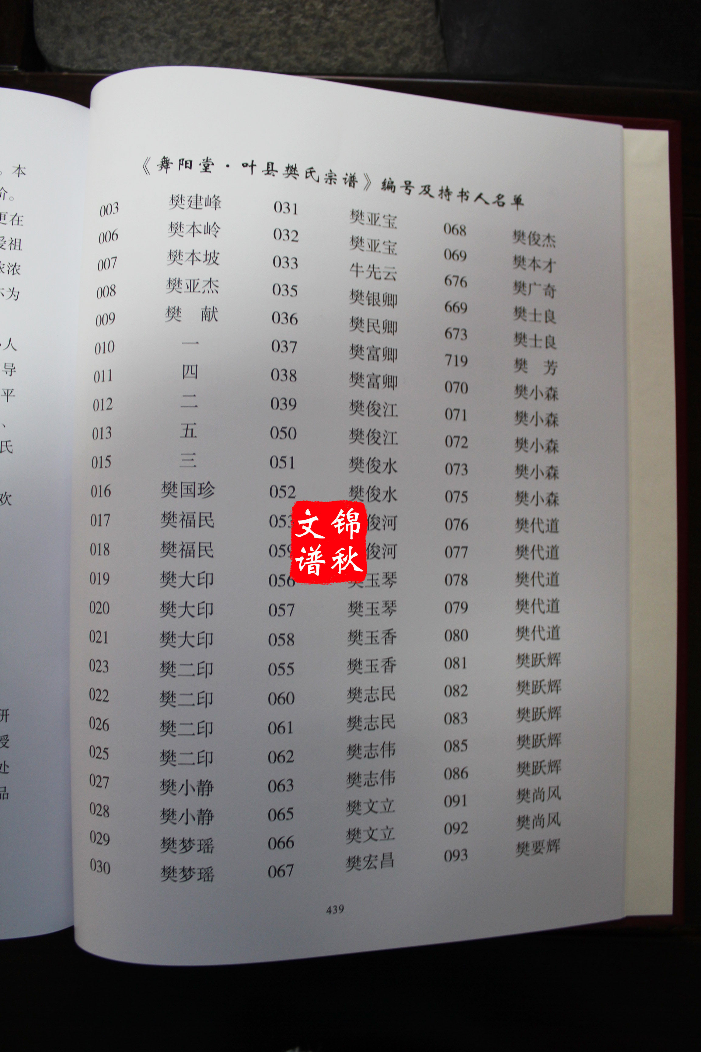 ? 本次《舞陽堂?葉縣樊氏宗譜》的編寫,得到了河南銪姓氏文化研究會樊姓委員會、舞陽堂樊氏宗親會樊恒發(fā)、樊福民等專家學者的鼎力支持和幫助。葉縣宗譜與舞陽堂實行統(tǒng)一先祖像及像贊、統(tǒng)一源流(明清以后各宗族自表)、統(tǒng)一世系、統(tǒng)一列傳的四統(tǒng)一原則,以便于后世聯(lián)絡親情,交往尋根。此亦為樊姓修譜史上的一次創(chuàng)新。
