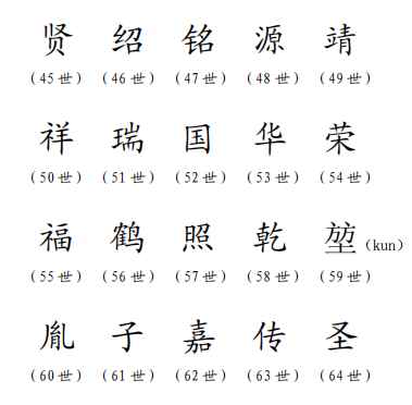 為統(tǒng)一標準,必須使用于名字中間一字?,F(xiàn)有名字,與此不符者,能改則改,不易改則罷。再生子孫起名時,皆須以本譜字輩譜為準。