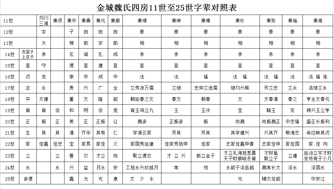 關(guān)于金城魏氏四房23世至54世新續(xù)字輩的解釋:
