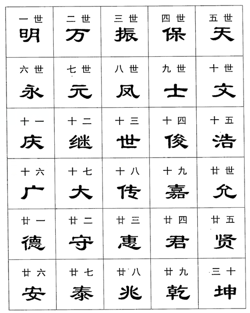 河南省.睢州孫聚寨李莊村劉氏字派一至三十世