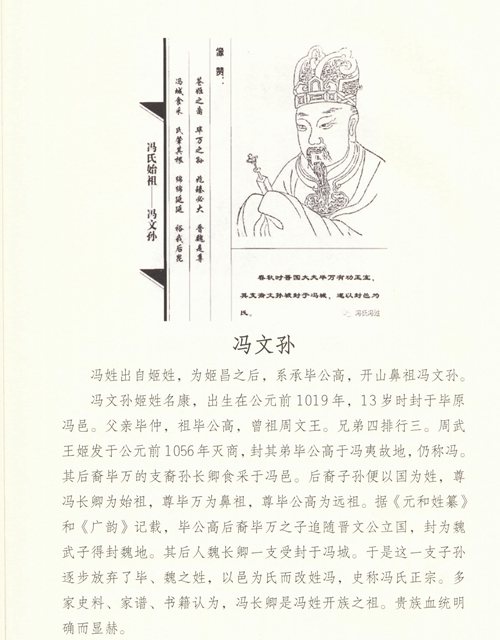 被鄭簡公封于馮地(今陜西大荔縣),他是鄭簡公時(shí)鄭國的重要大臣,他的后代用封邑作為自己的姓氏。以封邑馮地為姓,始為馮氏。馮簡子系華夏最早氏姓史《世本-氏姓篇》記載的馮氏第一人,畢公高裔孫,為馮氏行公(先祖)。