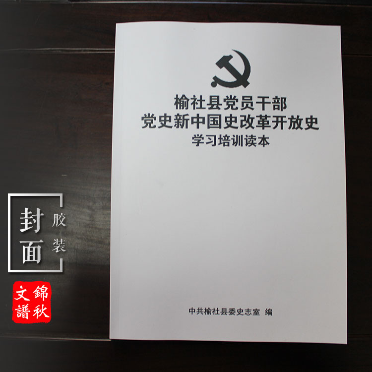 日前由印刷制作單位錦秋文譜負(fù)責(zé)的《榆社縣黨員干部黨史新中國史改革開放史學(xué)習(xí)培訓(xùn)讀本》,現(xiàn)進入到印前校對中。下面是膠裝印前校對樣書的圖片照。