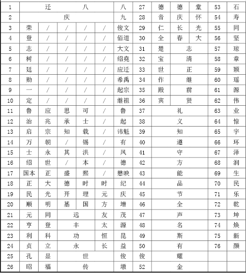 宗族輩份自第一代至第七十六代用字對(duì)接表