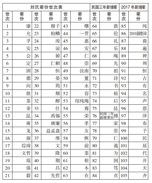 注:2010年清明新增20字輩分是劉氏76世孫石山下村人劉傅賢主編。