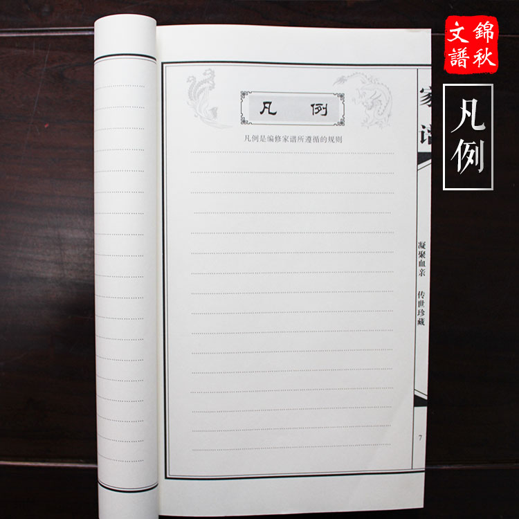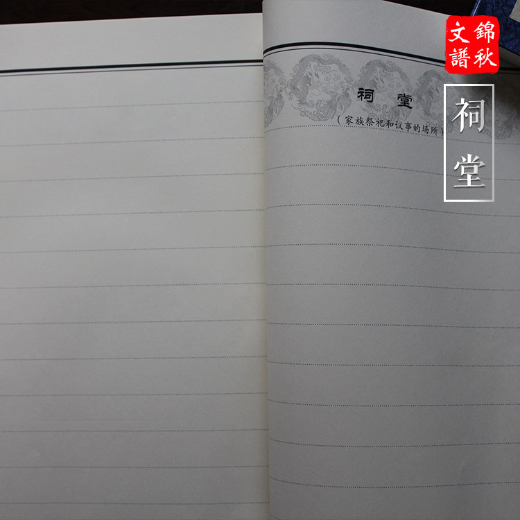 空白家譜可制成橫排本現(xiàn)代精裝,也可做成古式線裝豎排本(左裝訂、右裝訂)。一函兩冊、一卷本、三卷本、多卷本等多種不同版本、套型組合,可根據(jù)情況定制。