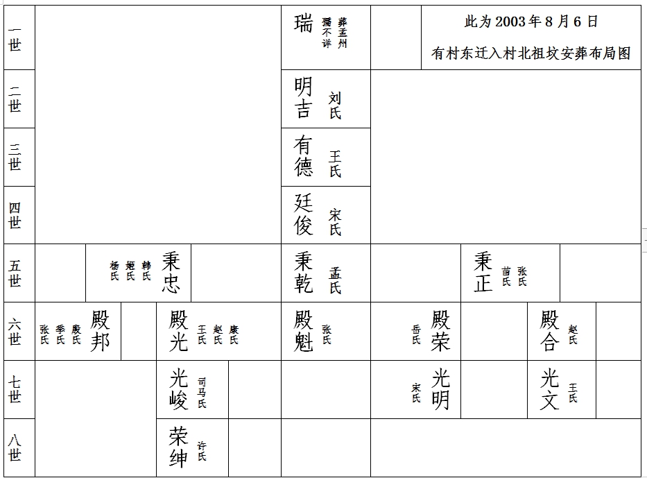 長門六世殿彰祖后裔四代部分葬墳示意圖 村南墓地