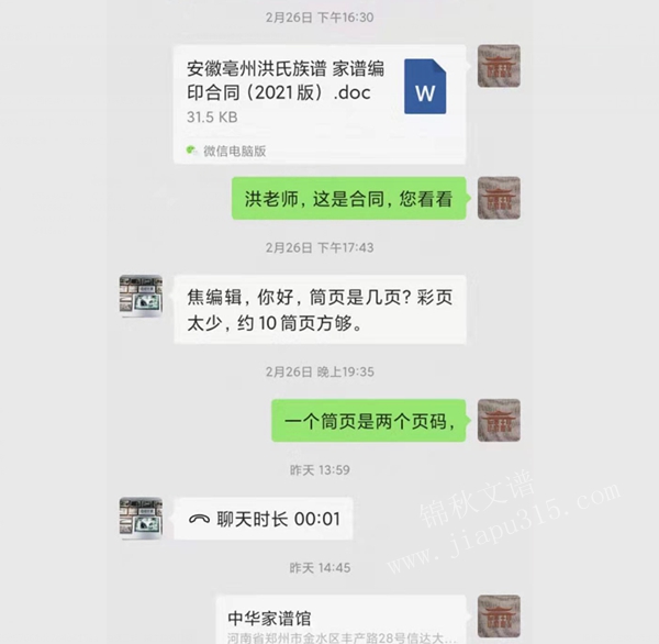 農(nóng)歷春節(jié)過年,2月26日,雙方就安徽亳州《洪氏族譜》家譜編印合同進行了梳理與確認。