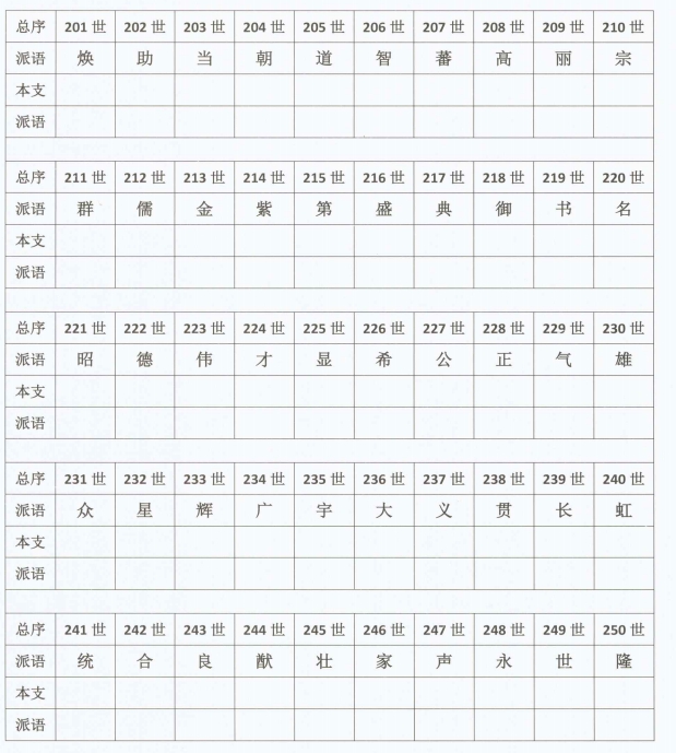朱家溝再字輩后不留,重立新排行:承開昭俊杰,光明映萬春。廷宗潤宇澤,群立躍乾坤。