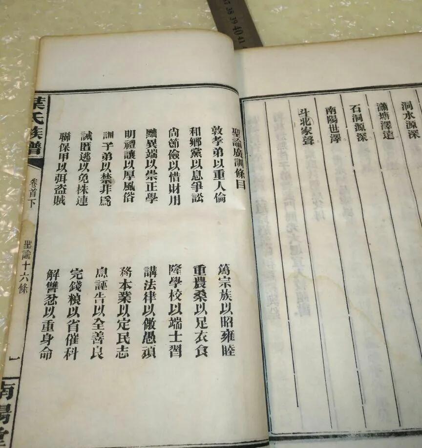 譜頭部分,是由譜名、譜序、譜論、遺像、恩榮錄、姓氏起源、墳塋、恩榮錄、家訓(xùn)、祠堂、五服圖、字輩等部分組成。