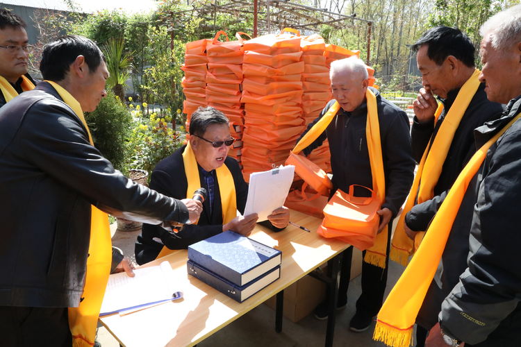 上午9:30,陳氏祭祖暨請譜活動在五家陳村尚志酒廠院內(nèi)進行,主持人陳志軍宣布祭祖儀式開始,主祭陳舉學、陳有民、陳林章、陳銀昌、陳留合,按一二三四五門的順序,自南而北,站在第一排;編委會顧問、名譽主任、主任、副主任和辦公室主任關(guān)舉站在第二排;編委委員和各家代表在各自位置站立,設(shè)案陳香,共祭祖先。