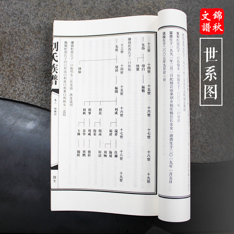 今續(xù)修家譜,乃族人之愿。幾經(jīng)聚議。再三商権,酌其要旨概為:一者,傳承。與歷次譜文對接,溯源正本,厘清關(guān)系;二者,教族。凡我劉氏族人,務(wù)盡族不漏支、支不遺戶、戶不落人;三者,與時俱進,男女皆人譜,妻者著實名,注籍貫,顯父諱;女者正其名,嫁地,夫君姓名職(稱)業(yè);四者,查漏補缺,勘校更正,力爭完善高質(zhì);五者,適當增補有關(guān)內(nèi)容,如劉氏文化探索,劉姓名人花絮,書法,傳記,銘仕錄等,使譜日臻完滿??傆[族譜,層次分明,編排有序,查閱方便,一目了然。達敬宗睦族、和諧家國、樹典立范之目的。