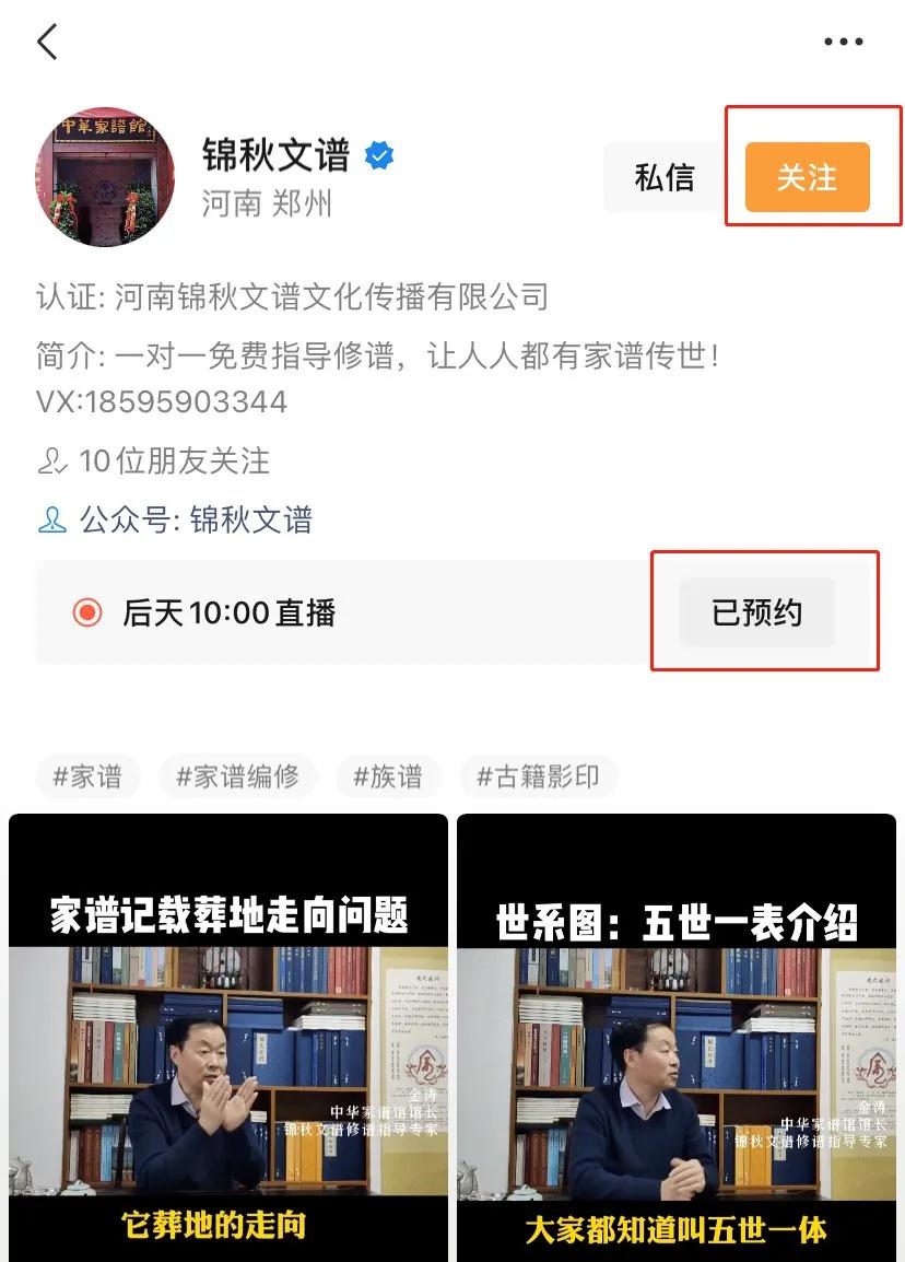 2、關(guān)注“錦秋文譜”官方視頻號,點(diǎn)擊直播預(yù)約。