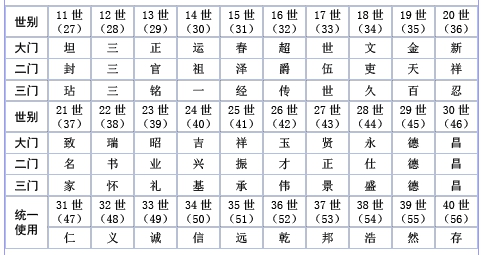 丁河鎮(zhèn)鳳山村龐氏宗字派行