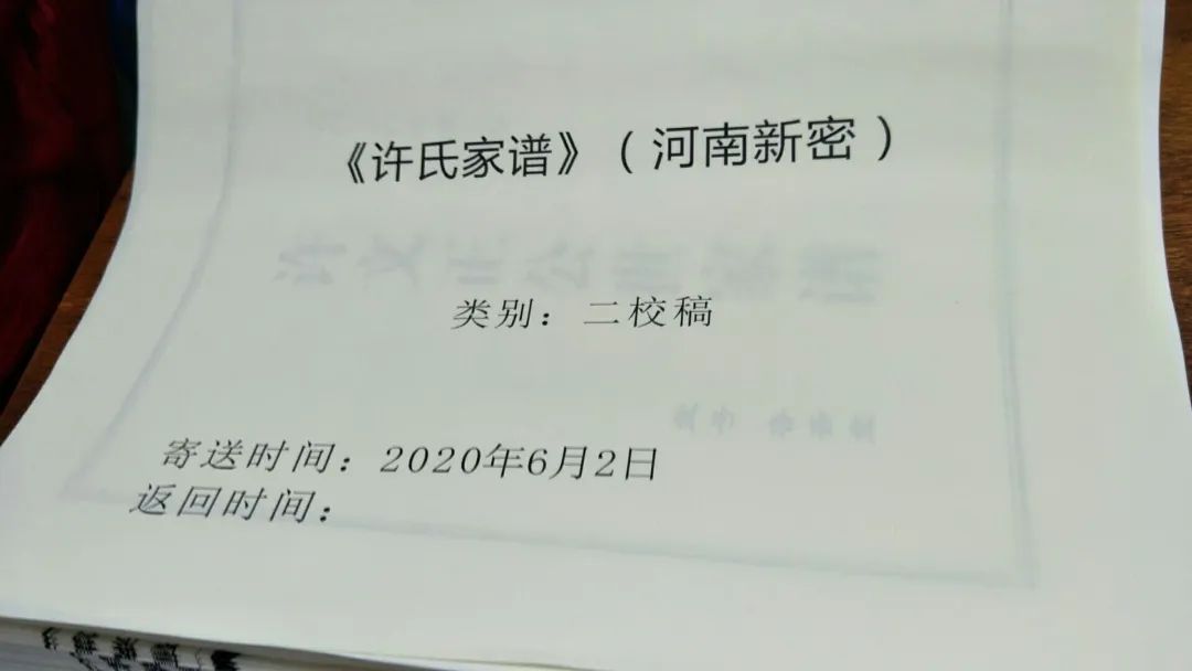 河南新密徐氏家譜編修進展更新,二校稿已完成,已被客戶自取。