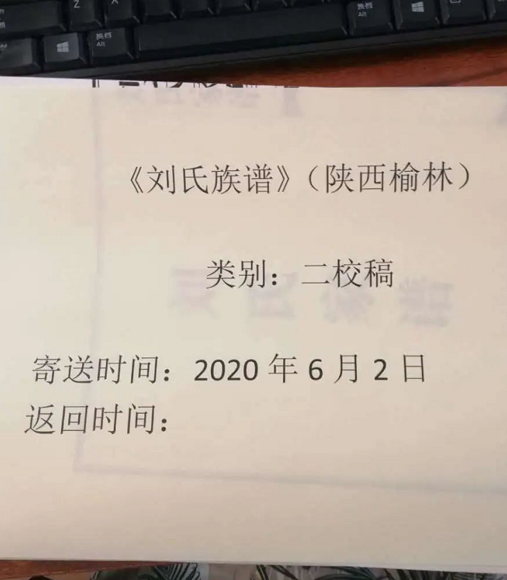 族譜編修新進展,陜西榆林劉氏族譜二校稿完成已寄送。