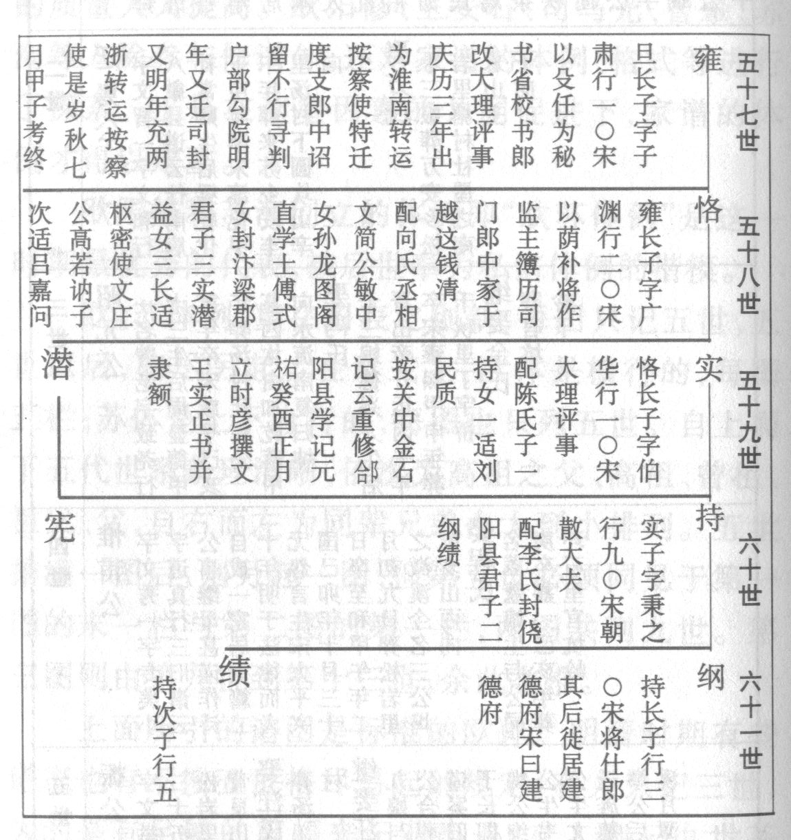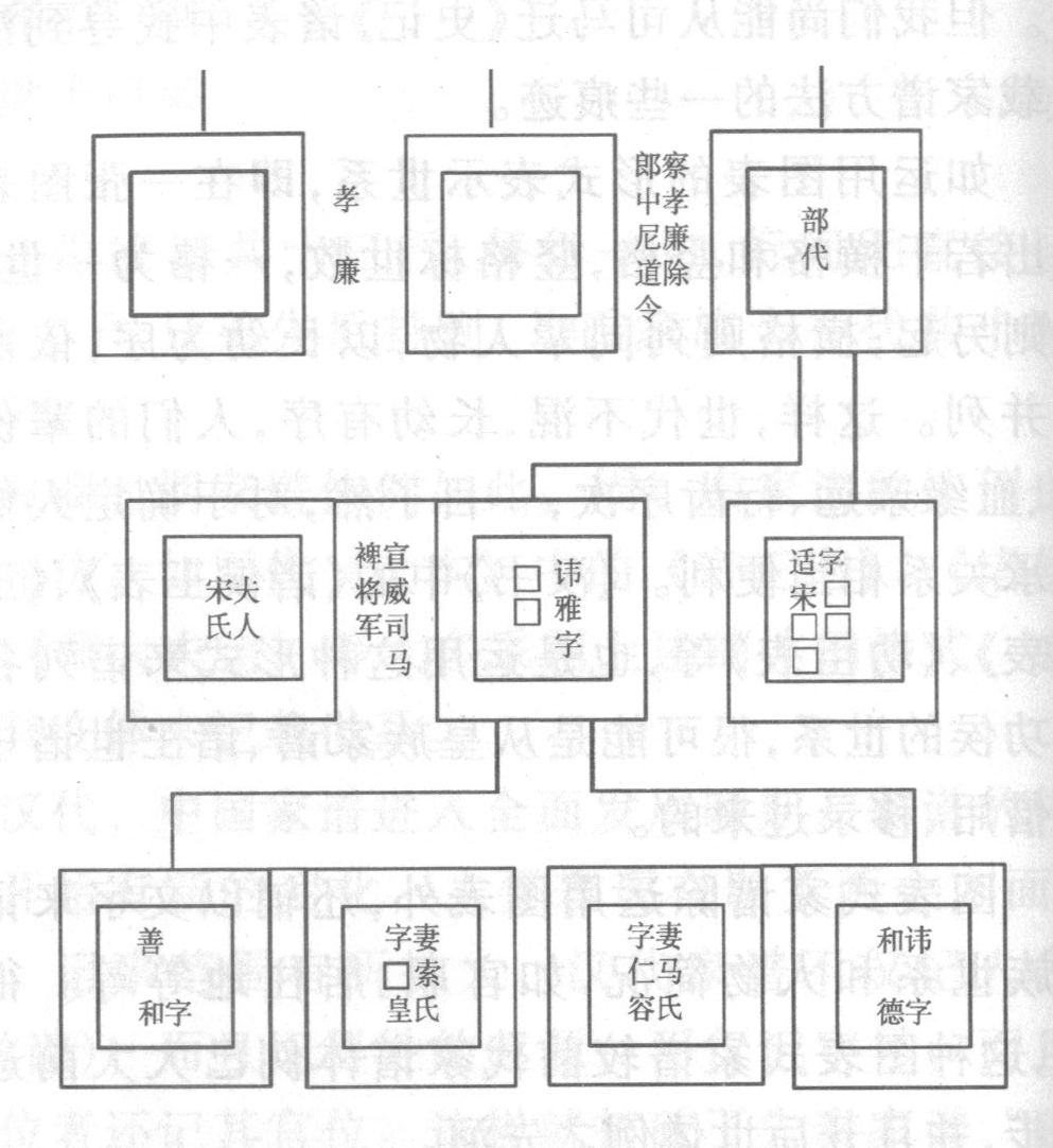 圖表式家譜除運用圖表外,還輔以文字來記述家族世系和人物簡況,如官職、居住地等等。很顯然,這種圖表式家譜較前代家譜體例已大大前進了一步,并且開后世體例之先河。