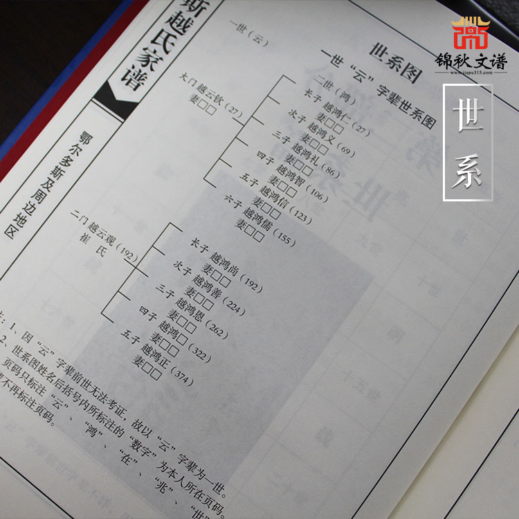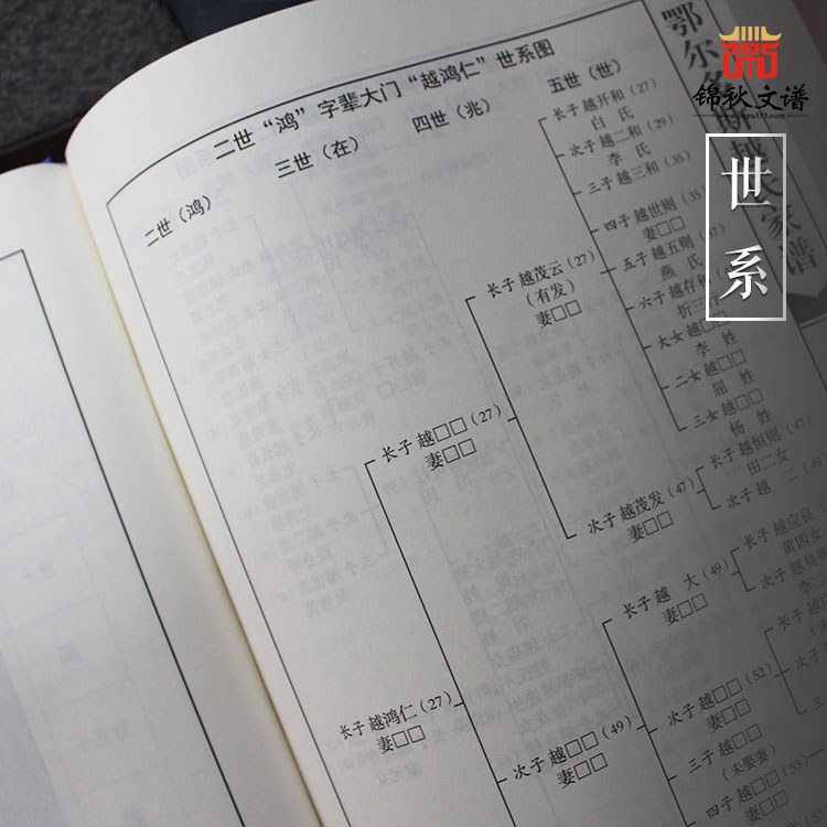 (精裝燙金藍(lán)色越氏家譜世系圖)