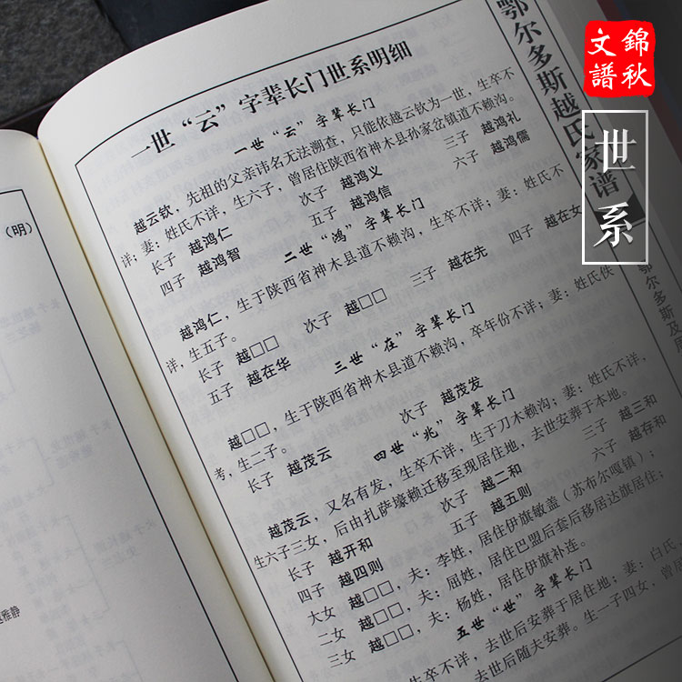 此次家譜撰寫(xiě)是在祖輩口口相傳的字輩基礎(chǔ)上,于上世紀(jì)九十年代初,由原伊盟文化處處長(zhǎng)越世杰老人家歷經(jīng)數(shù)年調(diào)查考證,對(duì)原有家譜進(jìn)行了整理修訂。遺憾的是越世杰老人在家譜收集整理過(guò)程中,不幸患病離開(kāi)了人世,之后由其長(zhǎng)子越淑良繼續(xù)完成其父未盡之遺愿。此次家譜修訂,除了越氏優(yōu)秀人物介紹、越氏文化等內(nèi)容外,字譜沿革等原則上秉承原有家譜之遺風(fēng),以收錄各支系現(xiàn)有人口為主,并新增了越氏族人的生平簡(jiǎn)歷等。