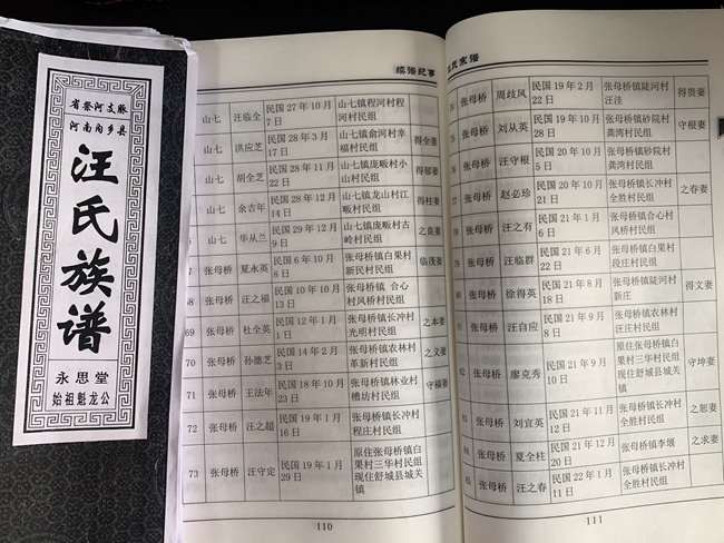 一番寒暄之后,汪丙華老師給張編輯查看了打印店所編印的一版汪氏宗譜樣書(shū)。下面是一些細(xì)節(jié)照。