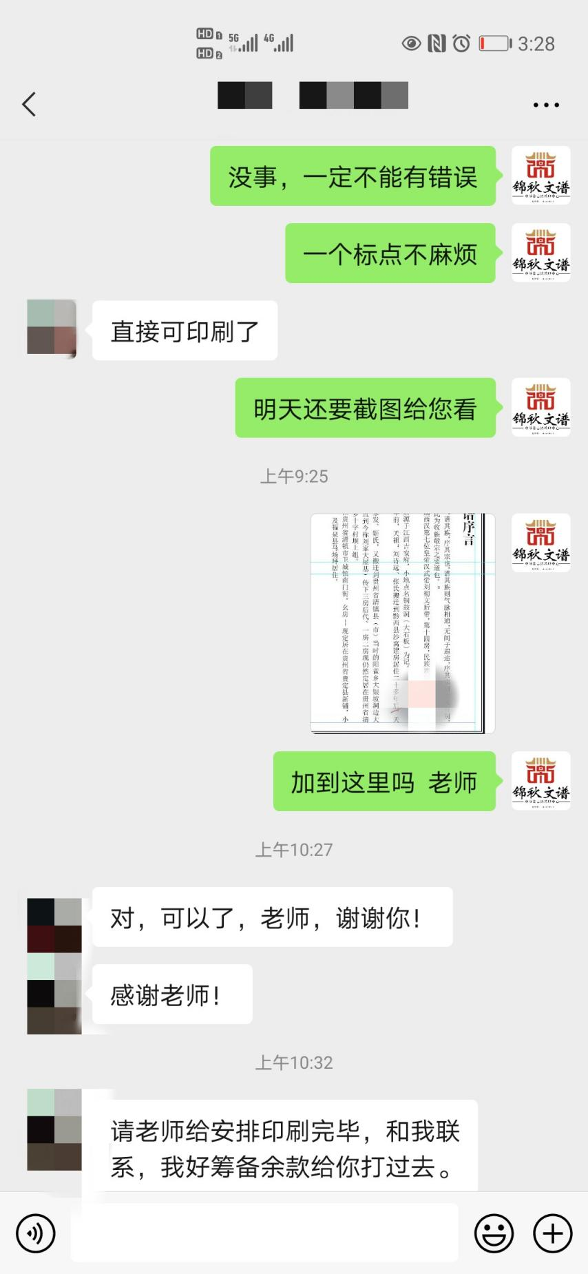 來自河南的李氏家族,日前便在錦秋文譜進行了家譜的編修工作,而在初次的合作結束后,李老師及家族族人對錦秋文譜的工作態(tài)度和工藝制作表示了滿意,再次選擇和錦秋文譜合作,隨即聯(lián)系到王編輯,對家譜進行加印工作。