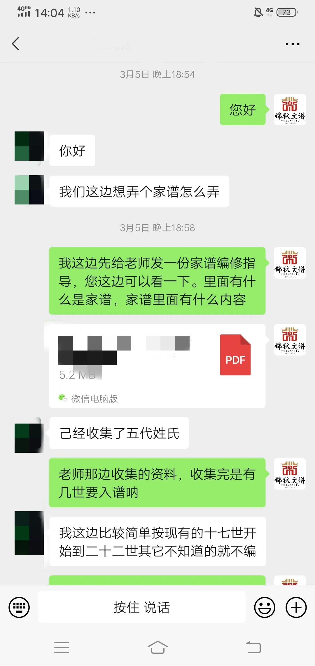 在后續(xù)和趙編輯的深入探討中,陳老師表達了錦秋文譜的雄厚實力的認可,趙編輯就此對陳老師介紹了錦秋文譜以往所編修的家譜案例作為介紹,并且讓陳老師清楚到錦秋文譜獨家的家譜工藝流程、宣紙印刷、環(huán)保紙墨、非遺等獨家工藝介紹,陳氏家族很是認可,隨即便與錦秋文譜簽署家譜編印協(xié)議。