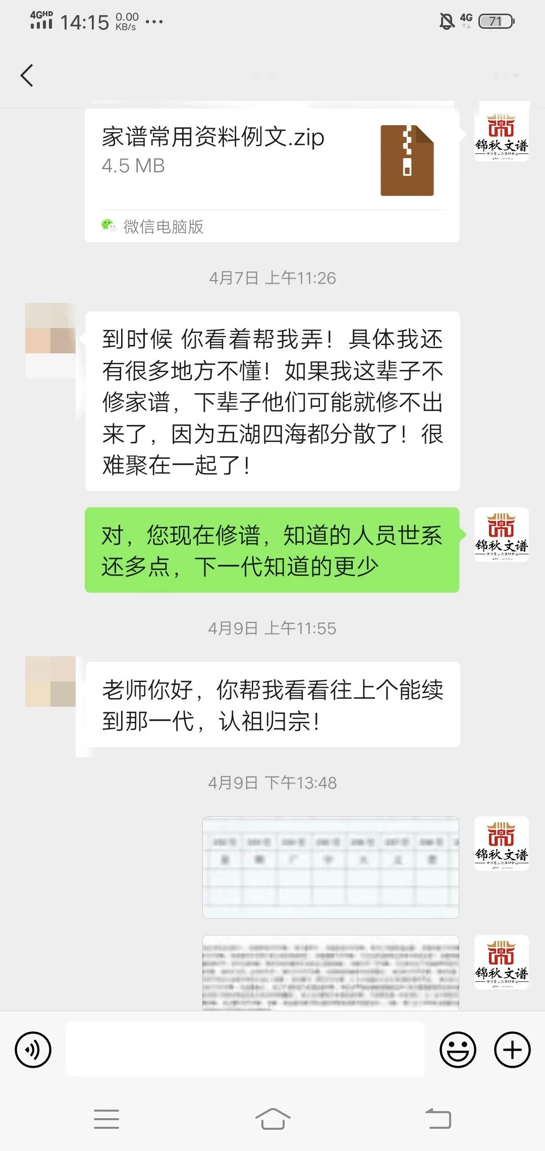 趙編輯在了解到方老師家族情況下提出了建設(shè)性的建議,方老師表示受益匪淺,趙編輯也在溝通中所了解到由于方氏家族續(xù)譜難度較大,方老師扛起編修事業(yè)為此付出了很多,但方老師沒有絲毫怨言,為的只是讓家族后代了解到自己的的祖先,令人十分敬佩,在清楚編修細節(jié)后,雙方大當即便確定簽約事宜。