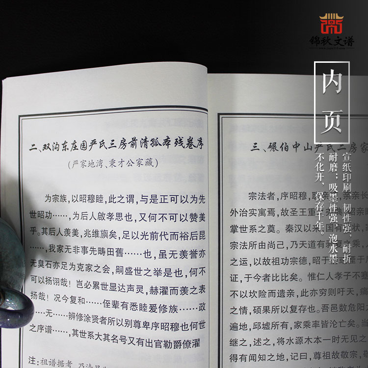 為宗族,以昭穆睦,此之謂,與是正可以為先世昭功……,為后人啟孝思也,又何不可以贊美乎。其后人羨美,兆維旗矣,足以光前代而裕后昆…我家無非事先疇田.…也,雖無羨譽亦無臭石亦足為克家之會,嗣盛世之舉是也,何不可以揚詡哉!豈必累世顯達聲靈,赫濯而羨之表揚哉!況今復(fù)和…….侄輩有悉睦愛修族.……政攻……辨修涂賢者所以別尊卑序昭穆也何世之譜……,其世系大其名號又有出官勒爵僚耀注:祖譜據(jù)考,乃清早期夾宣紙裝裱而成,毀之水火,殘傷之極,所遺之物片言只字亦為珠璣陳紙殘墨也,是無價之珍故謹錄寶之。