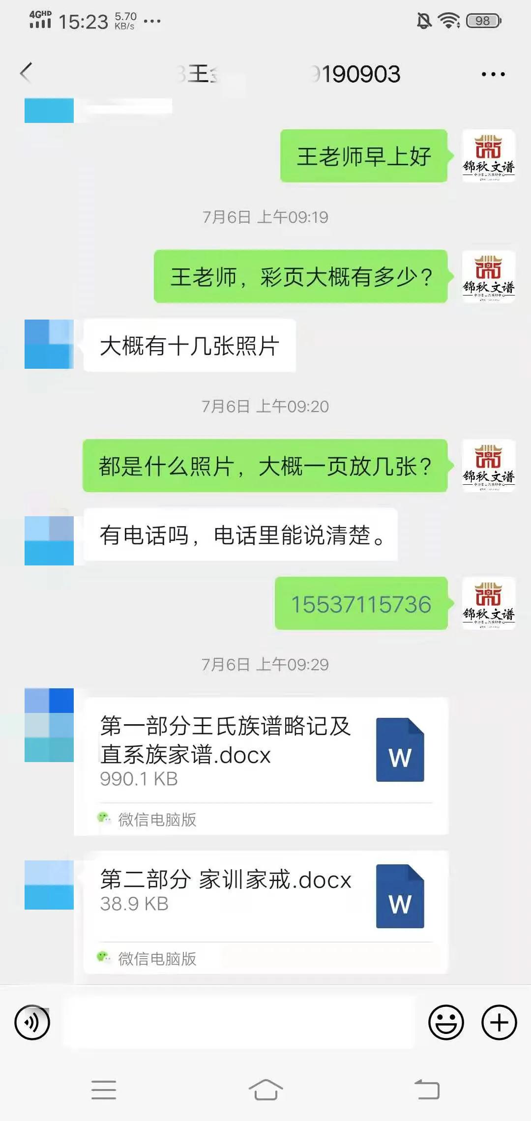 在王老師與錦秋文譜聯(lián)系上時(shí),雙方便確認(rèn)了資料,又在確認(rèn)好資料后對(duì)編修好王氏家譜做了深入的探討,其中不乏包括編修格式、印刷內(nèi)容等等,最終在相互的探討中,王老師確定了與錦秋文譜趙編輯的方案,與錦秋文譜簽約家譜編修協(xié)議。
