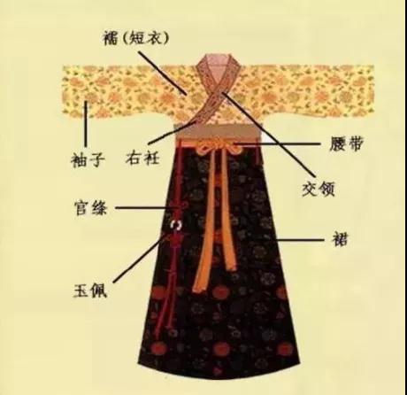 “衽”指的是衣襟,“右衽”指的是外露出的衣襟向右,穿著時,左衣襟要壓在右衣襟上,