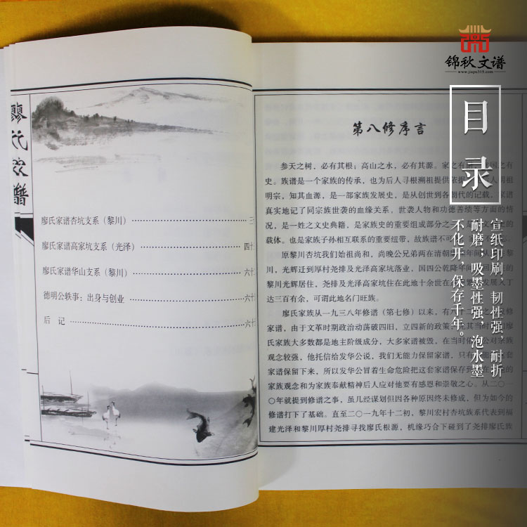 四、圖文格式:延續(xù)老譜格式,采用歐式錄入、五世一提,簡(jiǎn)化豎排、宣紙印刷,古式線裝、左裝釘,白話文敘述。