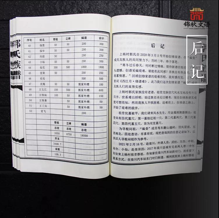 特別是“族委會(huì)”成員,精誠(chéng)團(tuán)結(jié),心往一處想,勁往一處使,盡職盡責(zé),不辭辛勞,外出尋根問祖,宣傳發(fā)動(dòng),籌措資金,攻堅(jiān)克難,整理編寫。先后數(shù)十次召開會(huì)議,用汗水和心血凝鑄此譜,歷經(jīng)兩年,“上楊村郭氏家譜”終于問世。