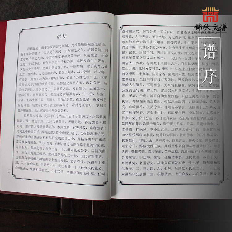 張氏宗譜的重點(diǎn)部分,先祖、老譜、宗祠、編委會成員等,采用彩色印刷方式將內(nèi)容放在首頁部分予以重點(diǎn)展現(xiàn),清晰明了。