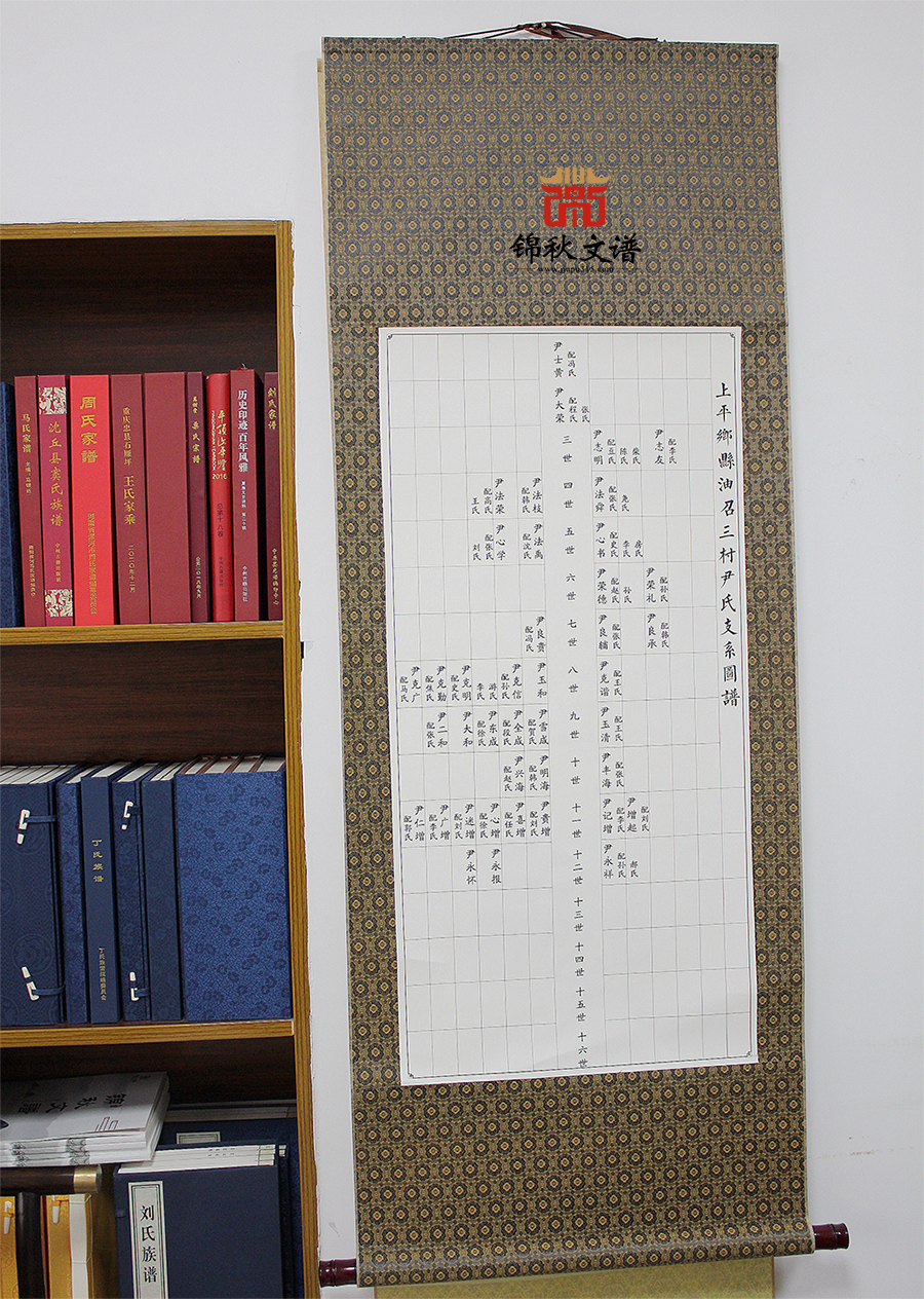 【尹氏掛軸】上平縣油召三村尹氏支系圖譜
