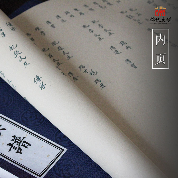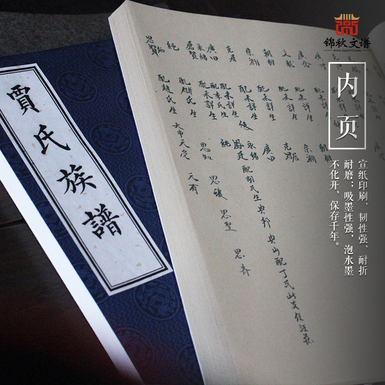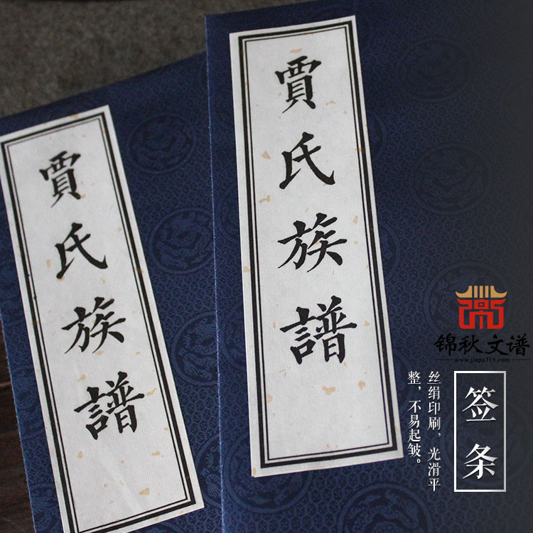 金箔簽條 大八開本 內(nèi)頁仿古宣紙 手寫老譜翻印《賈氏族譜》